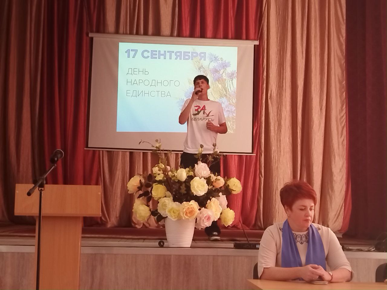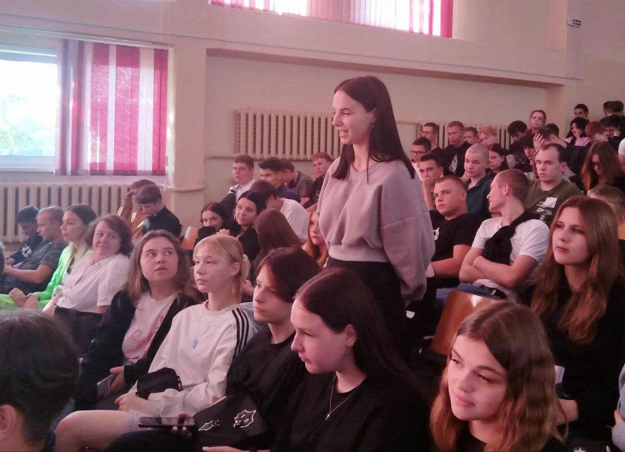 17 сентября в Вилейском государственном колледже прошла диалоговая площадка, посвящённая Дню народного единства Республики Беларусь. Спикерами стали председатель первичной профсоюзной организации учащихся Татьяна Крот и первый секретарь Вилейского РК ОО "БРСМ" Диана Рогозина. Учащиеся охотно задавали вопросы о молодежных инициативах БРСМ, в чем видят спикеры свою задачу по укрепление суверенного единого государства, о роли своей профессии в единении белорусского народа. После содержательной беседы учащиеся посмотрели фильм "Культурный код".