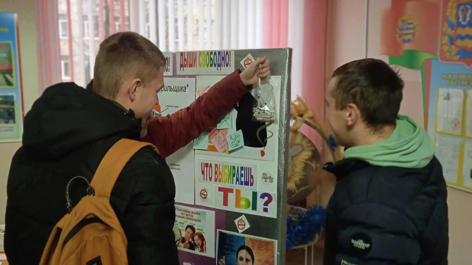Волонтеры призывали курильщиков отказаться от сигарет хотя бы на один день и задуматься о том, насколько курение вредит здоровью . Вместо сигарет они раздавали учащимся вкусные конфеты. В конце акции все обмененные сигареты были сломаны со словами «Прощайте вредные привычки, здравствуй здоровый образ жизни!!"