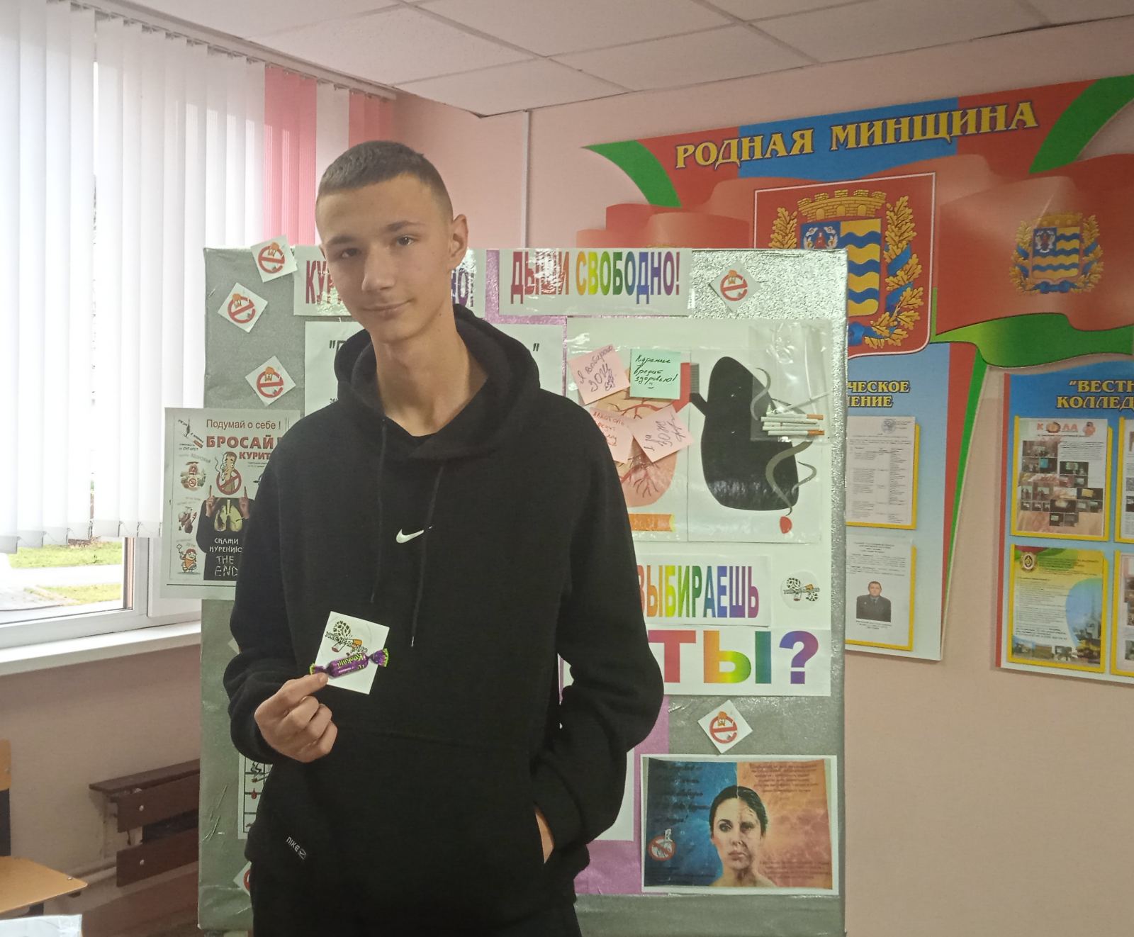 «Курить не модно, дыши свободно!» - под таким девизом сегодня, в Международный день отказа от курения, в колледже прошла акция, которую подготовили и провели активисты волонтерского отряда БРСМ «Доброе сердце».