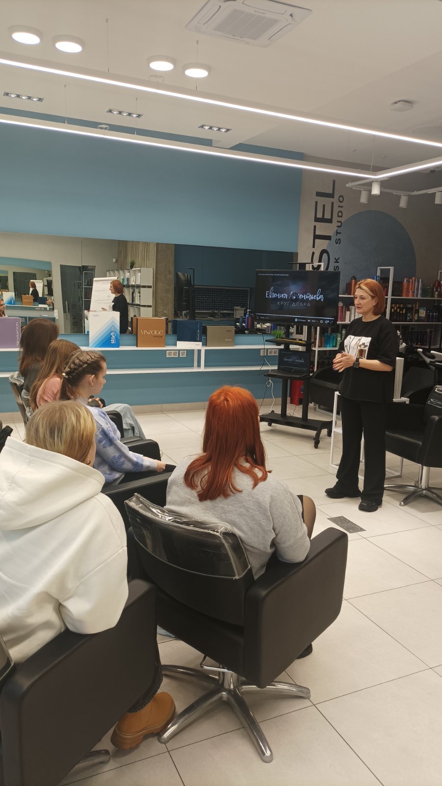 23 декабря группа 2-22 по профессии парикмахерское искусство и декоративная косметика посетили г. Минск компанию "Эстель" "День открытых дверей" , где смогли примерить на себя "роль ведущих парикмахеров компании"