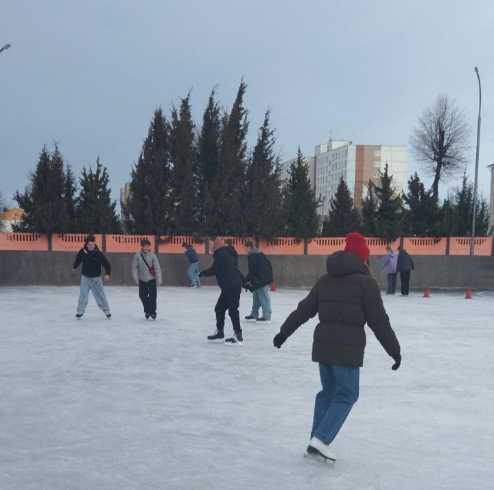 Сначала посетили каток, где смогли покататься на коньках и насладиться свежим воздухом. Все старались, и даже были моменты, когда кто-то падал, но это только добавляло веселья!