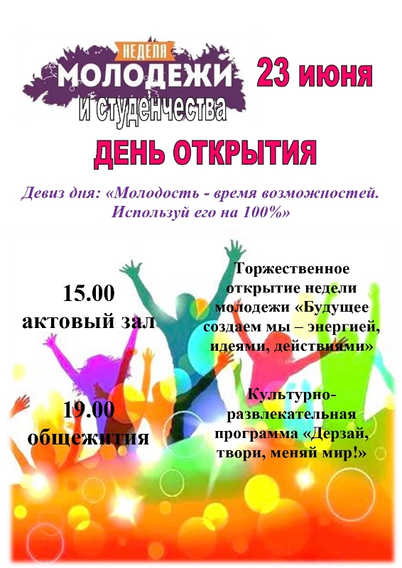 Сегодня в колледже стартовало самое яркое событие этого лета – Неделя молодежи и студенчества. Неделя, где каждый сможет проявить себя, найти единомышленников и зарядиться энергией будущего! Торжественное открытие под девизом «Будущее создаем мы – энергией, идеями, действиями», в котором приняли и учащиеся Ильянского государственного аграрного колледжа, и Молодечненского государственного колледж, - стало ярким, позитивным и запоминающимся!