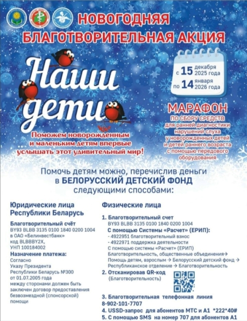 Благотворительная акции «Наши дети» будет проходить в нашей стране в период с 15 декабря 2025 г. по 14 января 2026 г.