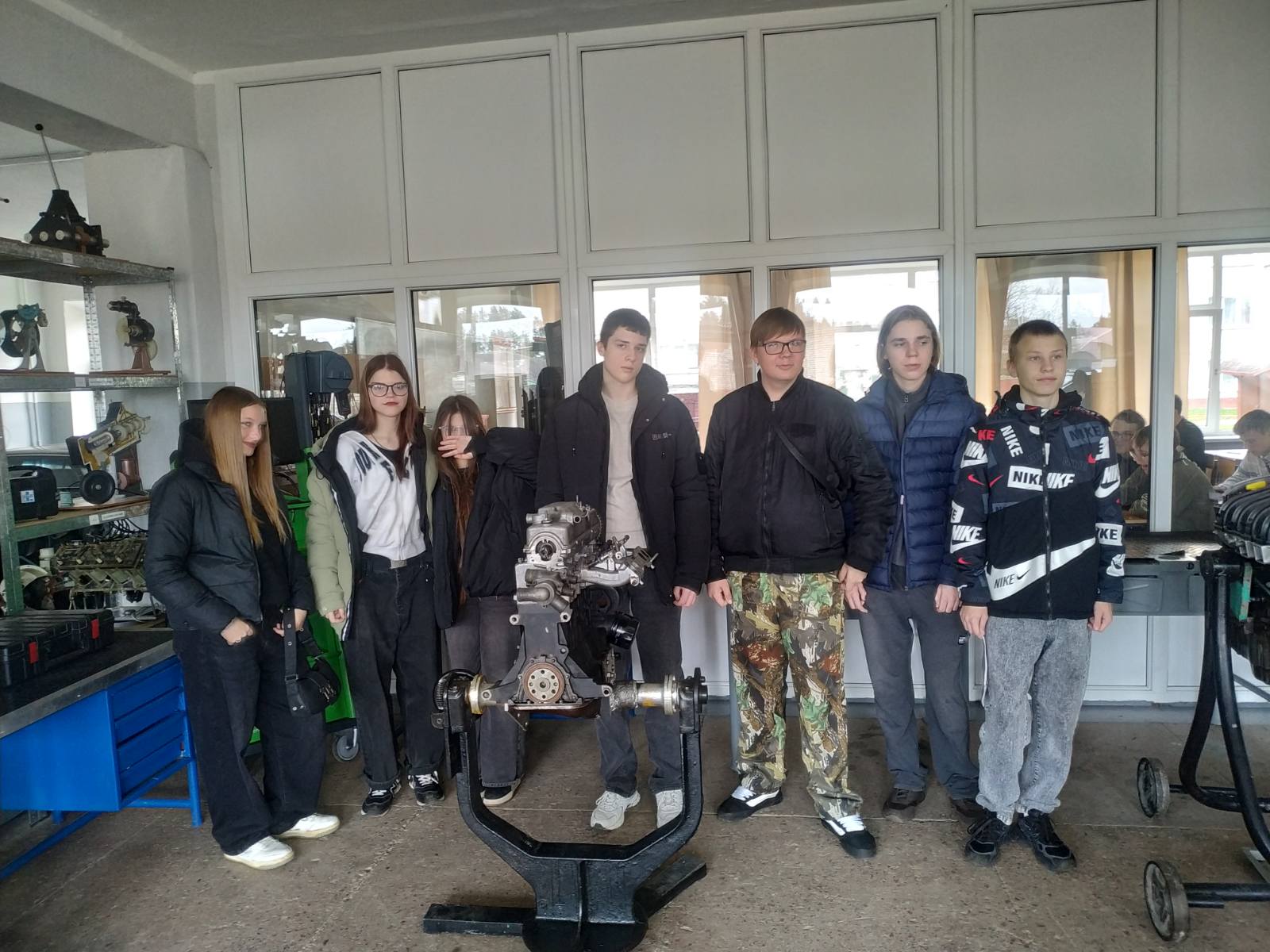 В ходе экскурсии школьники смогли увидеть современное оборудование и диагностические стенды, используемые для обслуживания и ремонта автомобилей.