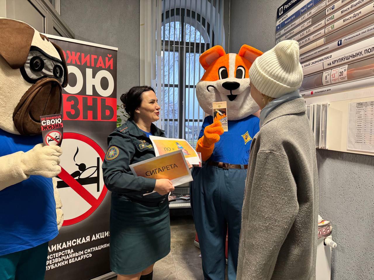 Активисты волонтерских отрядов «Доброе сердце» и "Луч добра" совместно с сотрудниками Вилейского РОЧС и районного комитета ОО «БРСМ» провели акцию "Не прожигай свою жизнь"