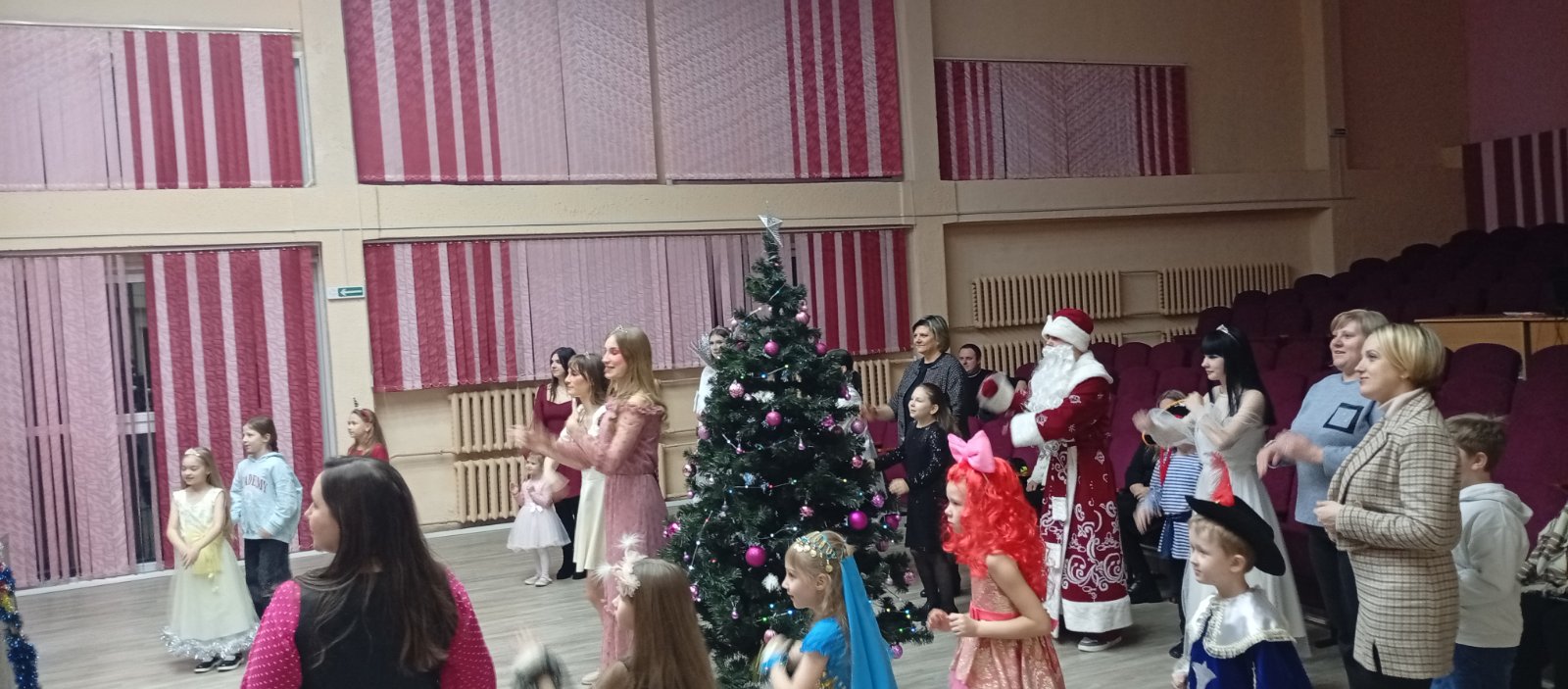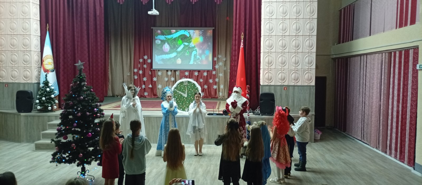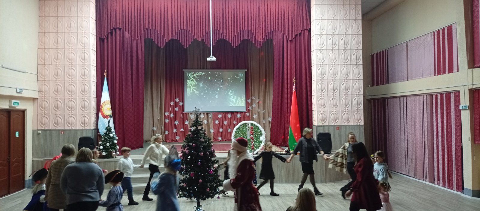 Программа была наполнена веселыми играми и танцами и, конечно, долгожданной встречей с Дедом Морозом и Снегурочкой.