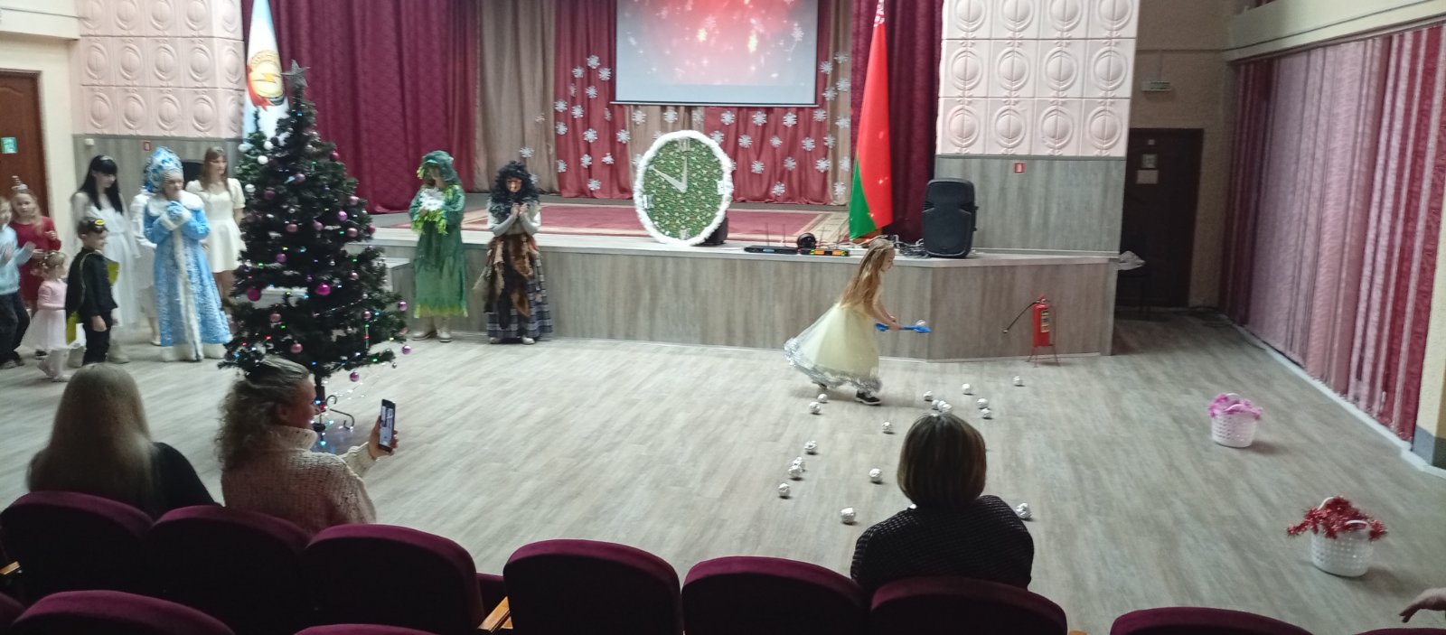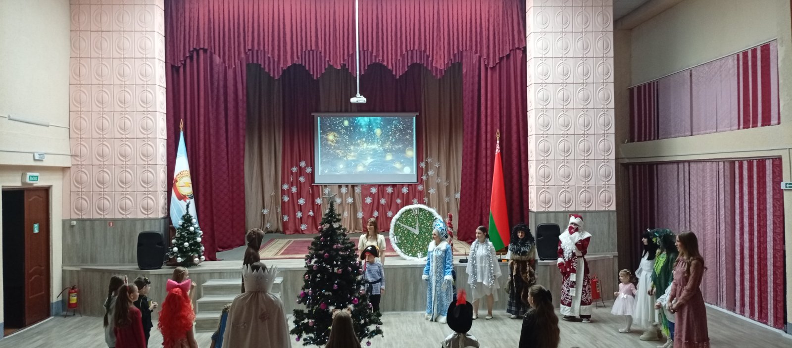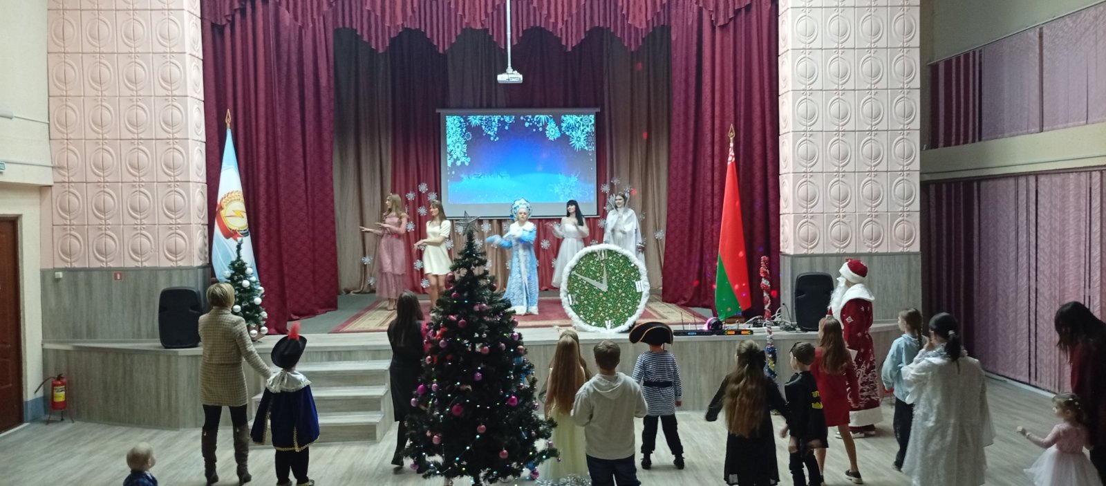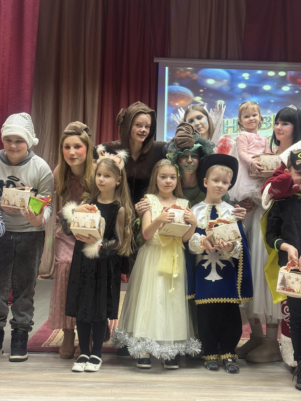 Программа была наполнена веселыми играми и танцами и, конечно, долгожданной встречей с Дедом Морозом и Снегурочкой.